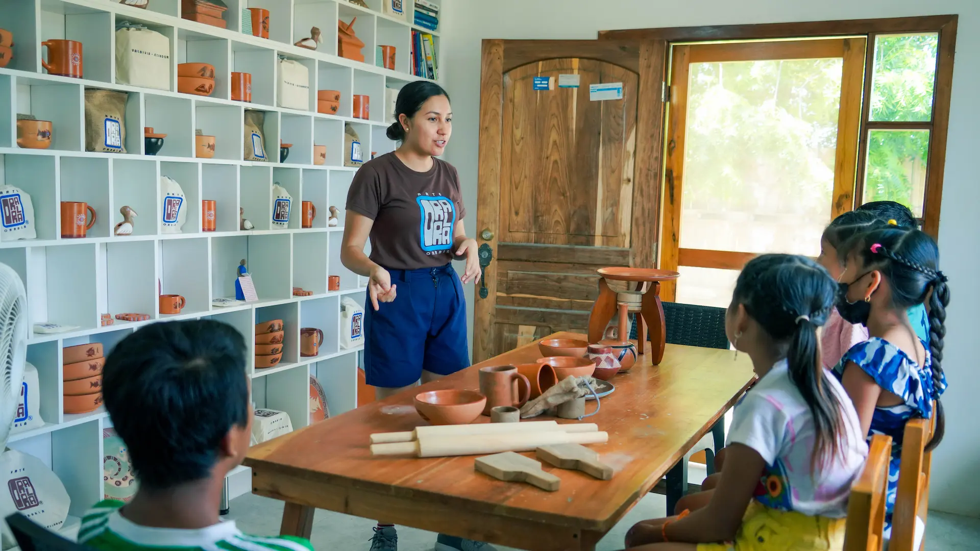 Niños de La Nueva Unión recibiendo clases en la Casa Taller de ArteOrrala